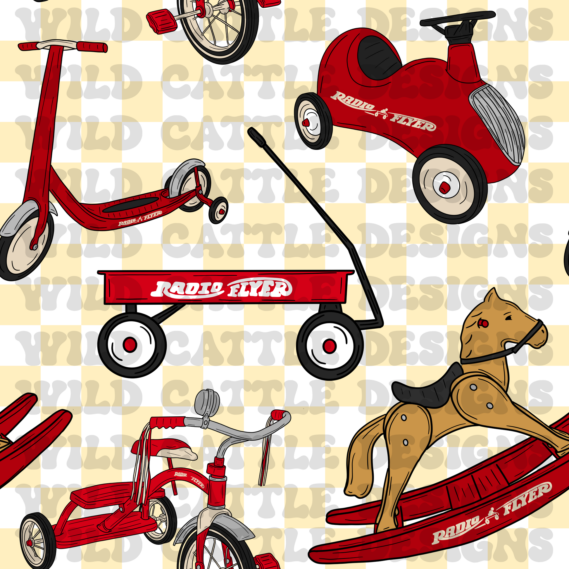 Vintage red toy checker seamless
